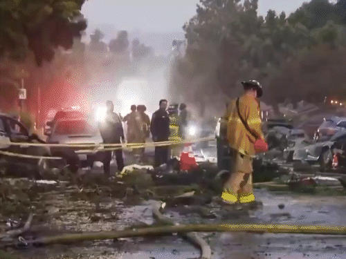 अमेरिका के सैन डिएगो में छोटा पैसेंजर प्लेन क्रैश:15 घरों में लगी आग, कोहरे की वजह से हुआ हादसा