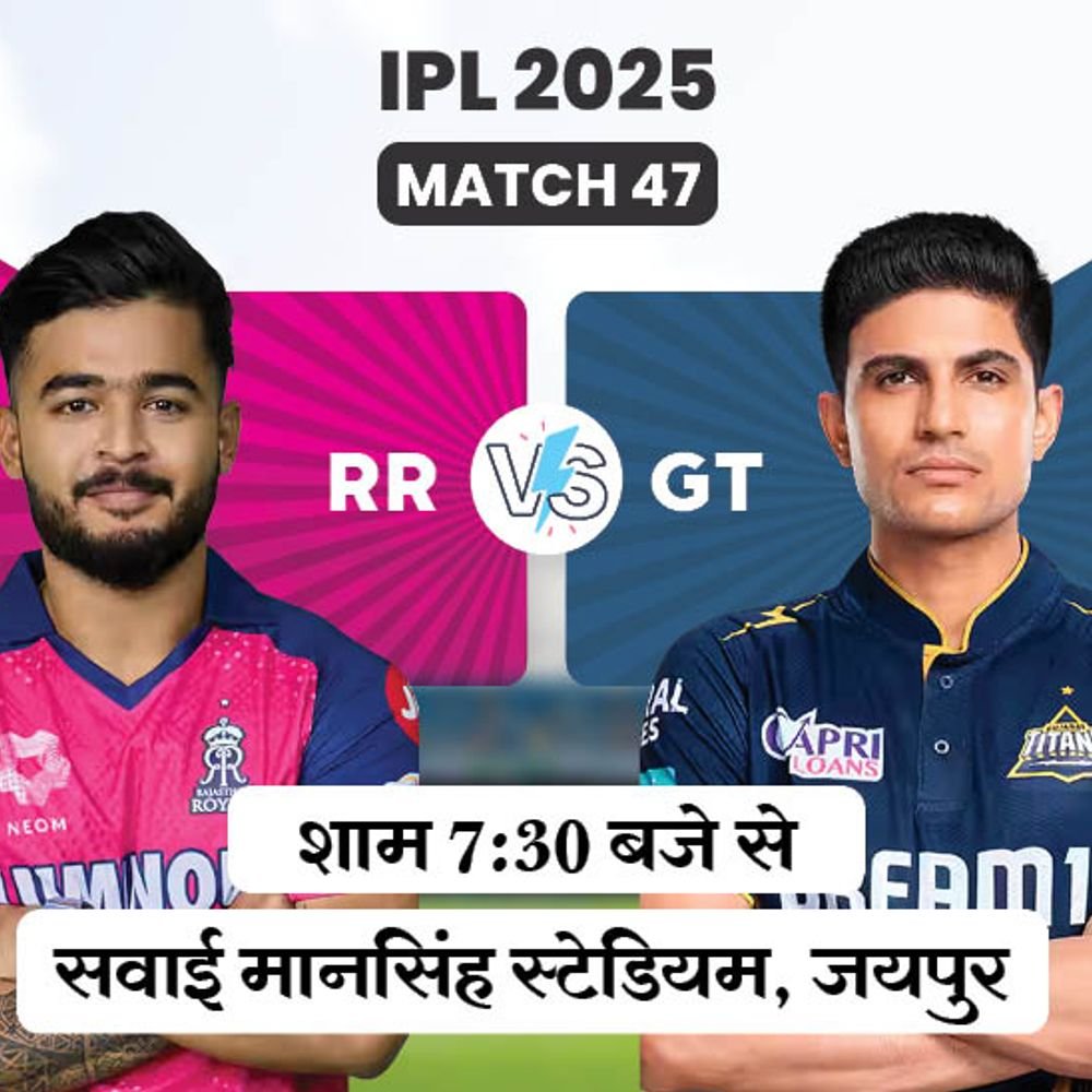 इंडियन प्रीमियर लीग (IPL) 2025 में आज राजस्थान रॉयल्स (RR) और गुजरात टाइटंस (GT) के बीच मुकाबला होगा। सीजन का 47वां मैच जयपुर के सवाई मानसिंह स्टेडियम में शाम 7:30 बजे से खेला जाएगा। दोनों टीमों का सीजन में दूसरी बार सामना होगा। पिछले मैच में गुजरात ने अपने घरेलू मैदान पर राजस्थान को 58 रन से हराया था। 2022 की चैंपियन गुजरात के 8 में से 6 जीत और 2 हार के साथ 12 पॉइंट्स हैं। 2008 की विजेता राजस्थान ने 18वें सीजन में अब तक 9 में से केवल 2 मैच जीते और 7 हारे हैं। मैच डिटेल्स, 47वां मैच