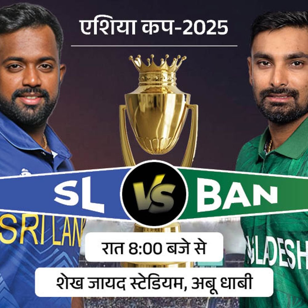 बांग्लादेश एशिया कप 2025 के पांचवें मुकाबले में आज छह बार की चैंपियन श्रीलंका से भिड़ेगी। ग्रुप बी का यह मैच भारतीय समयानुसार रात 8:00 बजे से अबू धाबी के शेख जायद स्टेडियम में खेला जाएगा। एशिया कप खिताब की तलाश में लगे बांग्लादेश ने टूर्नामेंट के अपने पहले मैच में हॉन्ग कॉन्ग को हराया था। वहीं, श्रीलंका का यह पहला मैच होगा। बांग्लादेश ने अपने पहले मैच में भले ही आसानी से जीत हासिल की, लेकिन पेसर तस्कीन अहमद और लेग स्पिनर रिशाद हुसैन विकेट लेने के बावजूद काफी रन दिए थे। ऐसे में श्रीलंका के खिलाफ ऐसी कोई भी गलती बांग्लादेश को भारी पड़ सकती है। वहीं, श्रीलंका की टीम तीनों डिपार्टमेंट में संतुलित नजर आ रही है। श्रीलंका-बांग्लादेश का एशिया कप में 17 बार सामना हुआ