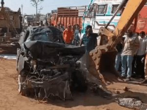 छत्तीसगढ़ में 2 सड़क हादसे..8 की मौत:रायपुर में डिवाइडर तोड़कर ट्रक से टकराई कार; 5 की गई जान; JCB से निकालने पड़े शव