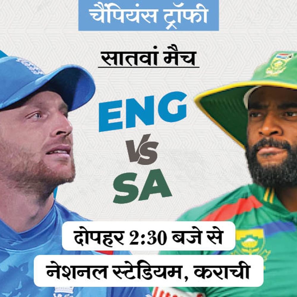 ICC चैंपियंस ट्रॉफी 2025 का 11वां मैच आज साउथ अफ्रीका और इंग्लैंड के बीच खेला जाएगा। मुकाबला कराची के नेशनल स्टेडियम में दोपहर 2:30 बजे से शुरू होगा। दोनों टीमों के दो-दो मैच हो चुके हैं। साउथ अफ्रीका ने एक जीता और दूसरा मैच पानी में धुल गया। वहीं इंग्लैंड को पहली जीत की तलाश है। साउथ अफ्रीका का पिछला मुकाबला बारिश की वजह से रद्द हो गया था, लेकिन इस मैच को जीतकर टीम सेमीफाइनल में जगह पक्की कर लेगी। दूसरी ओर, शुरुआती दो मैच हारकर टूर्नामेंट से बाहर हो चुकी इंग्लैंड की नजरें जीत के साथ समापन करना चाहेगी। इंग्लैंड अगर बड़े अंतर से जीता तो टीम अफगानिस्तान को सेमीफाइनल में क्वालिफाई करा देगी। मैच डिटेल्स, 11वां मैच