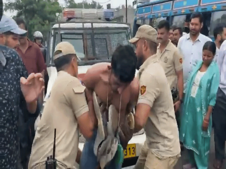 जम्मू में चोरी के एक आरोपी को जूतों की माला पहनाकर सड़क पर परेड कराने का वीडियो सामने आया है। इस वीडियो में कुछ पुलिस कर्मी आरोपी को पुलिस की गाड़ी के बोनट पर बैठाते नजर आ रहे हैं। वहां मौजूद लोग आरोपी की इस हालत पर पुलिस की तारीफ करते भी नजर आए। मीडिया रिपोर्ट्स के मुताबिक वीडियो में दिख रहा व्यक्ति एक मरीज के अटेंडेंट से लूटपाट करने का आरोपी है। जिसे शहर के एक अस्पताल के बाहर पकड़ा गया। बाद में लोगों ने उसके हाथ बांधकर और गले में जूतों की माला डालकर सड़कों पर घुमाया। हालांकि घटना की निंदा करते हुए जम्मू के वरिष्ठ पुलिस अधीक्षक (एसएसपी) जोगिंदर सिंह ने मामले की विभागीय जांच के आदेश दिए हैं। जोगिंदर ने कहा कि पुलिस कर्मियों की कार्रवाई गैर-पेशेवर और अनुचित थी। पुलिस का दावा- आरोपी कुख्यात चोर बख्शी नगर पुलिस स्टेशन के जिस SHO की निगरानी में यह घटना हुई उसने बताया कि आरोपी एक कुख्यात अपराधी है और हाल ही में पकड़े गए एक गिरोह का हिस्सा है। उन्होंने कहा कि आरोपी नशे में था और हाथापाई और लंबे समय तक पीछा करने के बाद पकड़ा गया। पुलिस ने बताया कि कुछ दिन पहले अपने मरीज के लिए दवाई खरीदते समय 40,000 रुपए की लूट का शिकार हुए एक व्यक्ति ने शहर के बीचों-बीच एक अस्पताल के बाहर आरोपी को पहचान लिया और उससे भिड़ गया। आरोपी ने चाकू से हमला करके उस व्यक्ति को घायल कर दिया और भागने की कोशिश की। उन्होंने बताया कि इलाके में गश्त कर रहे पुलिस कर्मियों ने आरोपी का पीछा किया और उसे पकड़ लिया। पकड़े जाने के बाद, आरोपी के हाथ बांध दिए गए और पीछा करने वाले कुछ स्थानीय लोगों ने उसे जूतों की माला पहना दी। एक महीने में ऐसी दूसरी घटना जम्मू शहर में एक महीने में यह दूसरी घटना थी, जब किसी अपराध के आरोपी के साथ इस तरह का व्यवहार सार्वजनिक रूप से किया गया। इससे पहले 11 जून को जम्मू के बाहरी इलाके गंग्याल चौक में गोलीबारी की घटना में तीन आरोपियों को पकड़े जाने के बाद पुलिस कर्मियों ने उसे सार्वजनिक रूप से पीटा था। ये खबर भी पढ़ें… ओडिशा में 2 युवकों का आधा सिर मूंडा, घास खिलाई: गो-तस्करी के शक में पीटा, 9 आरोपी गिरफ्तार ओडिशा के गंजाम जिले में गो-तस्करी के शक में दो दलित युवकों को बुरी तरह पीटा गया। उनका आधा सिर मुंडवाया गया। उन्हें घुटनों के बल रेंगने, घास खाने और नाली का पानी पीने के लिए मजबूर किया गया। घटना का वीडियो सोशल मीडिया पर वायरल है। घटना 22 जून को खारिगुमा गांव में हुई। पुलिस ने अगले दिन यानी 23 जून को यह जानकारी दी। अब तक 9 लोगों को हिरासत में लिया गया है, बाकियों की तलाश जारी है। पढ़ें पूरी खबर…