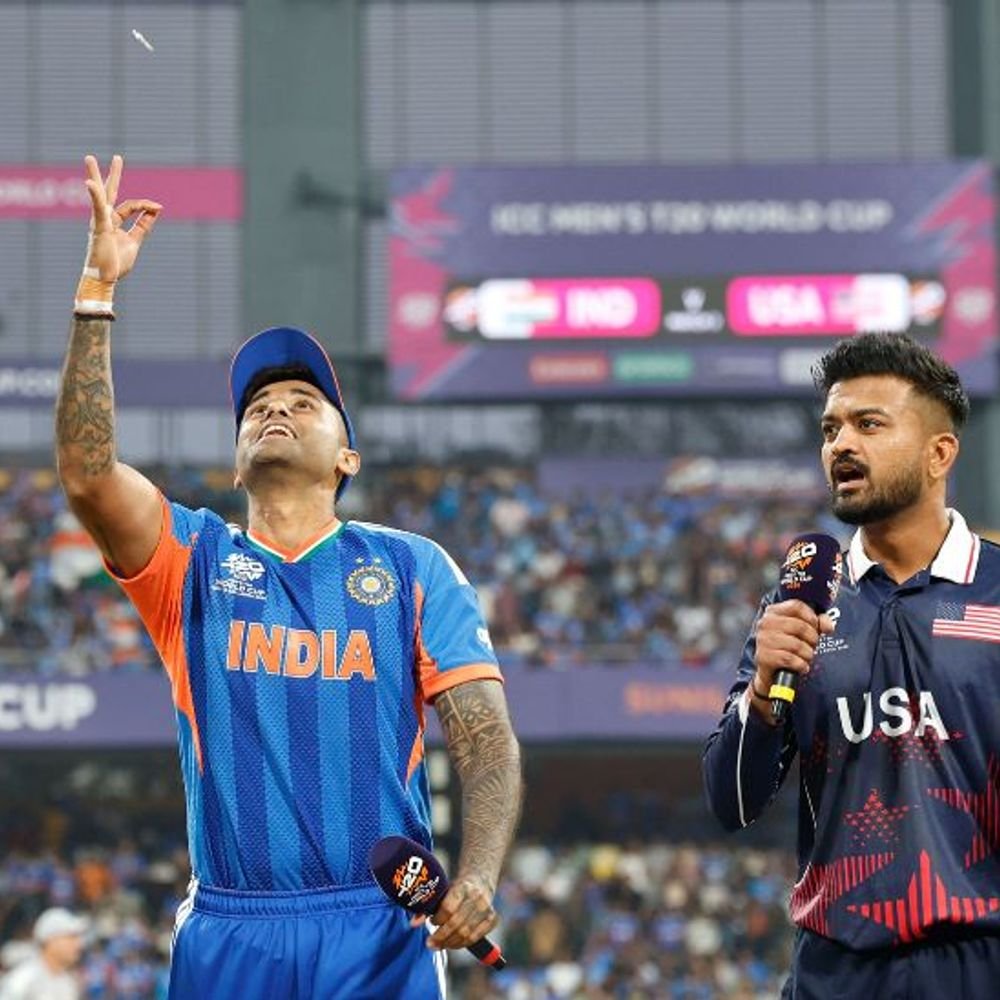 टी-20 वर्ल्ड कप का तीसरा मैच भारत और USA के बीच मुंबई के वानखेड़े स्टेडियम में खेला जा रहा है। USA ने टॉस जीतकर पहले बॉलिंग का फैसला किया है। भारतीय टीम ने 3 ओवर में एक विकेट पर 25 रन बना लिए हैं। ईशान किशन और तिलक वर्मा क्रीज पर हैं। ईशान ने सौरभ नेत्रवलकर की बॉल पर छक्का लगाकर टीम इंडिया का खाता खोला। पहले ओवर से 7 रन आए। टॉस से पहले ओपनिंग सेरेमनी में म्यूजिशियन ऋषभ शर्मा ने परफॉर्म ने किया। यहां 2024 में टी-20 वर्ल्ड कप जिताने वाले कप्तान रोहित शर्मा और ICC चैयरमैन जय शाह टी-20 वर्ल्ड कप ट्रॉफी लेकर आए। भारत टाइटल बचाने उतरी है। अब तक दुनिया की कोई भी टीम अपना टाइटल डिफेंड नहीं कर सकी है। मैच का स्कोरबोर्ड दोनों टीमों की प्लेइंग-11 भारत: अभिषेक शर्मा, ईशान किशन, तिलक वर्मा, सूर्यकुमार यादव (कप्तान), रिंकू सिंह, हार्दिक पंड्या, शिवम दुबे, अक्षर पटेल, अर्शदीप सिंह, मोहम्मद सिराज और वरुण चक्रवर्ती। USA: सैतेजा मुक्कामाला, एंड्रीज गौस, मोनांक पटेल (कप्तान), मिलिंद कुमार, संजय कृष्णमूर्ति, शुभम रंजने, हरमीत सिंह, मोहम्मद मोहसिन, शैडली वान शल्कविक, अली खान और सौरभ नेत्रवलकर।