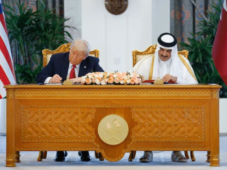 अमेरिकी राष्ट्रपति डोनाल्ड ट्रम्प और कतर के अमीर शेख तामिन बिन हमद अल-थानी के बीच बुधवार को दोहा में 1.2 ट्रिलियन डॉलर (करीब 100 लाख करोड़ रुपए) की अलग-अलग डील हुई। व्हाइट हाउस के मुताबिक इसमें दोनों देशों के बीच 243 अरब डॉलर (करीब 20 लाख करोड़ रुपए) की फाइनेंशियल डील भी शामिल है। इस फाइनेंशियल डील में कतर एयरवेज द्वारा बोइंग विमानों की खरीद, हथियारों की खरीद, नेचुरल गैस और क्वांटम टेक्नोलॉजी से जुड़े सौदे शामिल हैं। कतर एयरवेज ने बोइंग और जीई एयरोस्पेस के साथ 210 मेड इन अमेरिका ‘बोइंग 787 ड्रीमलाइनर’ और ‘777X’ विमानों की खरीद का समझौता किया। इसकी वैल्यू 96 अरब डॉलर (करीब 8 लाख करोड़ रुपए) है। आज UAE दौरे पर पहुंचेंगे ट्रम्प ट्रम्प अपने दूसरे कार्यकाल के पहले विदेशी दौरे के तहत बुधवार को सऊदी अरब के बाद कतर पहुंचे। कतर के अमीर ने खुद ट्रम्प को दोहा एयरपोर्ट पर रिसीव किया। उनका रेड साइबर ट्रक और ऊंटों से स्वागत हुआ। अपने मिडिल ईस्ट दौरे के आखिरी दिन यानी आज ट्रम्प UAE पहुंचेंगे। यहां वो UAE के राष्ट्रपति शेख मोहम्मद बिन जायद अल नहयान से मुलाकात करेंगे। दोनों देशों के बीच आर्टिफिशियल इंटेलिजेंस (AI), सेमीकंडक्टर और एनर्जी से जुड़े मुद्दों पर डील हो सकती है। अमेरिका और कतर में 4 प्रमुख समझौते ट्रम्प के कतर दौरे की फुटेज… सऊदी में सीरियाई राष्ट्रपति से मिले ट्रम्प