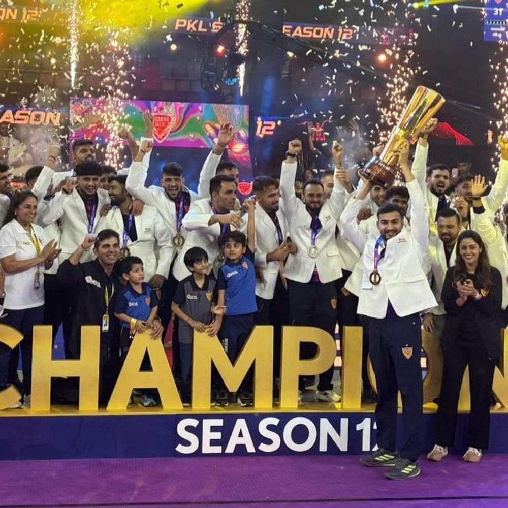 दबंग दिल्ली ने प्रो कबड्डी लीग (PKL) के 12वें सीजन का टाइटल जीत लिया है। शुक्रवार को होमग्राउंड पर ही दिल्ली ने पुणेरी पलटन को 31-28 से फाइनल हराया। कप्तान आशु मलिक 2 ही पॉइंट्स ले सके, लेकिन अजिंक्य पवार ने 6 और नीरज नरवाल ने 9 पॉइंट्स लेकर टीम को जीत दिलाई। दिल्ली के ही ईरानी डिफेंडर फजल अतराचली को प्लेयर ऑफ द टूर्नामेंट का अवॉर्ड मिला। उन्होंने सीजन में 52 टैकल पॉइंट्स हासिल किए। फाइनल में पुणे से आदित्य शिंदे ने 10 रेड पॉइंट्स हासिल किए, लेकिन टीम को जिता नहीं सके। पहले हाफ में आगे रही दिल्ली