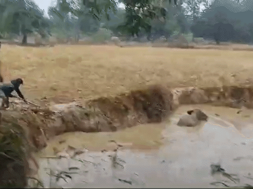 छत्तीसगढ़ के रायगढ़ जिले में हाथी का एक शावक पानी भरे खेत के गड्ढे में फंस गया। काफी देर तक वो गड्ढे से निकलने की कोशिश करता रहा, लेकिन इसमें वो सफल नहीं हो पाया। यहां के ग्रामीणों ने फावड़े से रास्ता बनाया, फिर शावक निकल सका। हाथियों का दल जंगल में इंतजार करता रहा। इसका वीडियो भी वायरल हो रहा है। मामला लैलूंगा रेंज के बॉर्डर से लगे चिल्कागुड़ा गांव का है। जानकारी के मुताबिक लैलूंगा रेंज में 41 हाथी का दल विचरण कर रहा है। सोमवार की सुबह तकरीबन 7 बजे दल जंगल से निकलकर खेत में पहुंच गया। यहां एक बड़े गड्ढे में पानी भरा हुआ है, जहां सभी हाथी नहाने उतर गए। शावक को छोड़कर जंगल में भागे हाथी इस दौरान शावक भी नहाने के लिए उतर गया। काफी देर तक हाथियों का दल यहां रहा, लेकिन बाद में हाथी गड्ढे से निकलकर जंगल की ओर चले गए। लेकिन शावक वहीं फंस गया। इस दौरान वो गड्ढे में इधर-उधर होता रहा। कोशिश करता रहा, लेकिन निकलने में नाकाम रहा। ग्रामीणों और वनकर्मी ने मिलकर निकाला खेत में बने गड्ढे में फंसे शावक की जानकारी जब ग्रामीणों को लगी, तो उन्होंने इसकी सूचना वन विभाग को दी। घरघोड़ा और लैलूंगा एसडीओ समेत वनकर्मी मौके पर पहुंचे। शावक को बाहर निकालने के लिए प्रयास शुरू किया। वनकर्मी और ग्रामीणों ने गड्ढे को फावडे़ से खोदकर बराबर किया, जिससे शावक बाहर निकल सका। दूर खड़ा था हाथियों का दल, नहीं किया हमला इस दौरान जंगल किनारे दूर में हाथियों का दल भी था। वीडियो में यह भी देखा जा रहा है कि जब ग्रामीण हाथी को निकालने के लिए मदद कर रहे थे, तो एक हाथी ग्रामीणों को देखते हुए आगे बढ़ रहा था, लेकिन उसने किसी पर हमला नहीं किया। जब शावक बाहर निकला, तो दौड़कर वह दूर चले गया। करीब 2 साल का होगा शावक घरघोड़ा एसडीओ केपी डिंडोरे ने बताया कि शावक करीब 2 साल का होगा। वह बाहर निकलकर वापस अपने झुंड में चला गया है। हाथियों को लेकर ग्रामीणों को सतर्क रहने की सलाह दी जा रही है। गांवों में मुनादी भी कराई जा रही है, ताकि किसी को नुकसान न पहुंचे। ………………………. छत्तीसगढ़ में हाथियों से जुड़ी ये खबर भी पढ़ें रायगढ़ में तालाब में डूबने से हाथी शावक की मौत:52 हाथियों का दल नहा रहा था, चिंघाड़ने से ट्रैकर्स को पता चला छत्तीसगढ़ के रायगढ़ जिले के हाटी में एक हाथी शावक की पानी में डूबने से मौत हो गई। हाथियों का दल जंगल से निकलकर नहाने के लिए तालाब में पहुंचा था, तभी यह हादसा हुआ। वन विभाग मामले की जांच कर रही है। पढ़ें पूरी खबर