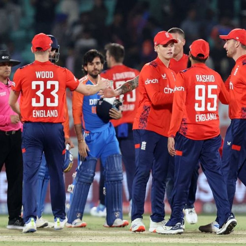 भारतीय क्रिकेट टीम मंगलवार को इंग्लैंड के खिलाफ तीसरे टी-20 मैच में 26 रन से हार गई है। राजकोट में खेले गए मुकाबले में टीम इंडिया को इंग्लैंड से 172 रन का टारगेट मिला, लेकिन भारतीय बैटर्स 20 ओवर में 9 विकेट पर 145 रन ही बना सके। भारत ने 8 ओवर में 68 रन पर 4 विकेट गंवा दिए थे। यहां से रन रेट बेहद धीमा हो गया, टीम अगले 6 ओवर में महज 22 रन ही बना सकी, जो हार का सबसे बड़ा कारण बना। हार्दिक पंड्या ने 35 बॉल में 40 रन, वॉशिंगटन सुंदर ने 15 बॉल में 6 रन और अक्षर पटेल ने 16 बॉल में 15 रन बनाए। इंग्लिश ओपनर बेन डकेट (51 रन) ने फिफ्टी बनाई। तीसरा टी-20 जीतकर इंग्लैंड ने सीरीज बचाए रखी है। भारत अब भी 2-1 से आगे है। चौथा मैच 31 जनवरी को पुणे में खेला जाएगा। पहला और दूसरा टी-20 भारत ने पहले बॉलिंग करते हुए ही जीता था। वह फोटो, जिसने मैच पलटा 5 पॉइंट्स में मैच एनालिसिस… 1. प्लेयर ऑफ द मैच टॉस जीतकर पहले बॉलिंग करने उतरी टीम इंडिया से स्पिनर्स ने बेहतरीन गेंदबाजी की। खासकर मिस्ट्री स्पिनर वरुण चक्रवर्ती ने। उन्होंने अपने स्पेल के दूसरे ओवर में इंग्लिश कप्तान जोस बटलर को पवेलियन भेजा और उनकी बेन डकेट के साथ फिफ्टी पार्टनरशिप तोड़ी। वरुण ने अपना स्पेल महज 24 रन देकर खत्म किया और 5 विकेट झटक लिए। उनकी बॉलिंग से इंग्लैंड ने एक समय 127 रन पर 8 विकेट गंवा दिए थे, लेकिन आखिरी ओवरों में ज्यादा रन बनने के कारण स्कोर 171 तक पहुंच गया। 2. हार के कारण 3. गेमचेंजर ऑफ द मैच इंग्लैंड के तेज गेंदबाजों ने पावरप्ले में 3 विकेट लिए, लेकिन उनकी पिटाई भी हुई। आदिल रशीद ने मिडिल ओवर्स में कसी हुई बॉलिंग की, लेकिन उन्हें दूसरे एंड पर जैमी ओवर्टन का बेहतरीन साथ मिला। ओवर्टन ने पहले स्पेल के 3 ओवर में महज 15 ही रन दिए और वॉशिंगटन सुंदर को पवेलियन भी भेज दिया। फिर 19वें ओवर में हार्दिक पंड्या और मोहम्मद शमी के विकेट लेकर जीत इंग्लैंड की झोली में डाल दी। 4. टर्निंग पॉइंट 172 के टारगेट के सामने भारत ने तेज शुरुआत की, लेकिन पावरप्ले में 3 विकेट गंवा दिए। 8वें ओवर में तिलक वर्मा भी आउट हो गए, उन्हें आदिल रशीद ने बेहतरीन लेग स्पिन गेंद पर बोल्ड किया। यही मैच का टर्निंग पॉइंट साबित हुआ। क्योंकि टीम यहां से अगले 6 ओवरों में 22 रन ही बना सकी। आदिल रशीद ने 4 ओवर में महज 15 रन दिए। जैमी ओवर्टन ने भी दूसरे एंड पर उनका बखूबी साथ दिया। 5. मैच रिपोर्ट 127/8 के बाद पहुंचाया सम्मानजनक स्कोर तक