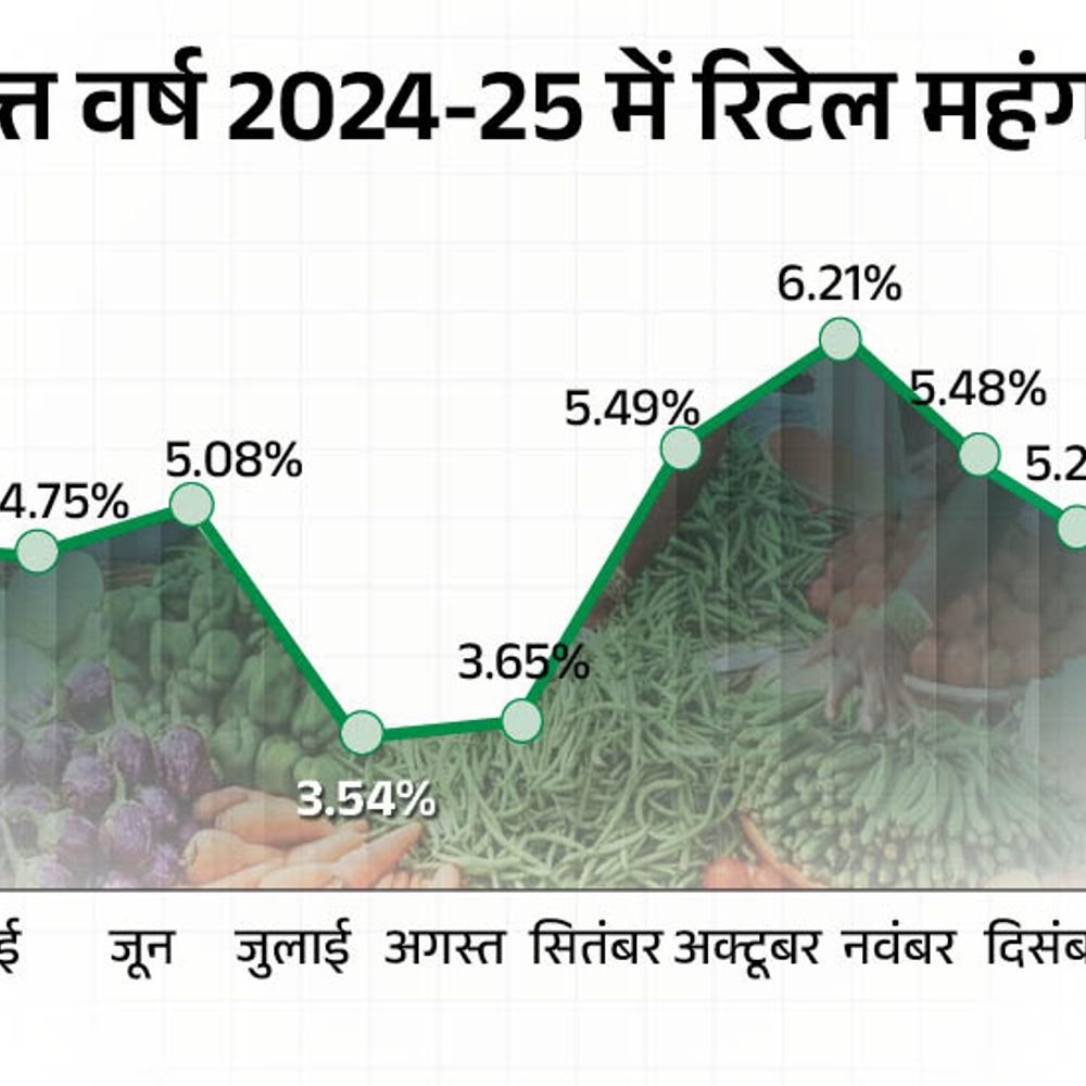 दाल और सब्जियां सस्ती होने से फरवरी में रिटेल महंगाई दर घटकर 3.61% पर आ गई है। ये महंगाई का 7 महीने का निचला स्तर है। जुलाई 2024 में महंगाई 3.54% पर थी। वहीं जनवरी 2025 में महंगाई 4.31% थी। सांख्यिकी मंत्रालय ने आज 12 मार्च को महंगाई के आंकड़े जारी किए। महंगाई के बास्केट में लगभग 50% योगदान खाने-पीने की चीजों का होता है। इसकी महंगाई महीने-दर-महीने आधार पर 5.97% से घटकर 3.75% हो गई है। वहीं ग्रामीण महंगाई 4.59% से घटकर 3.79% और शहरी महंगाई 3.87% से घटकर 3.32% हो गई है। जून तक कम ही रहेंगी सब्जियों की कीमतें बैंक ऑफ बड़ौदा के चीफ इकोनॉमिस्ट मदन सबनवीस ने कहा- सब्जियों के दाम में गिरावट आई है। सबसे ज्यादा टमाटर और आलू के भाव घटे हैं। यह स्थिति जून तक बने रहने की संभावना है। महंगाई कैसे प्रभावित करती है? महंगाई का सीधा संबंध पर्चेजिंग पावर से है। उदाहरण के लिए यदि महंगाई दर 6% है, तो अर्जित किए गए 100 रुपए का मूल्य सिर्फ 94 रुपए होगा। इसलिए महंगाई को देखते हुए ही निवेश करना चाहिए। नहीं तो आपके पैसे की वैल्यू कम हो जाएगी। महंगाई कैसे बढ़ती-घटती है? महंगाई का बढ़ना और घटना प्रोडक्ट की डिमांड और सप्लाई पर निर्भर करता है। अगर लोगों के पास पैसे ज्यादा होंगे तो वे ज्यादा चीजें खरीदेंगे। ज्यादा चीजें खरीदने से चीजों की डिमांड बढ़ेगी और डिमांड के मुताबिक सप्लाई नहीं होने पर इन चीजों की कीमत बढ़ेगी। इस तरह बाजार महंगाई की चपेट में आ जाता है। सीधे शब्दों में कहें तो बाजार में पैसों का अत्यधिक बहाव या चीजों की शॉर्टेज महंगाई का कारण बनता है। वहीं अगर डिमांड कम होगी और सप्लाई ज्यादा तो महंगाई कम होगी। CPI से तय होती है महंगाई एक ग्राहक के तौर पर आप और हम रिटेल मार्केट से सामान खरीदते हैं। इससे जुड़ी कीमतों में हुए बदलाव को दिखाने का काम कंज्यूमर प्राइस इंडेक्स यानी CPI करता है। हम सामान और सर्विसेज के लिए जो औसत मूल्य चुकाते हैं, CPI उसी को मापता है। कच्चे तेल, कमोडिटी की कीमतों, मेन्युफैक्चर्ड कॉस्ट के अलावा कई अन्य चीजें भी होती हैं, जिनकी रिटेल महंगाई दर तय करने में अहम भूमिका होती है। करीब 300 सामान ऐसे हैं, जिनकी कीमतों के आधार पर रिटेल महंगाई का रेट तय होता है।