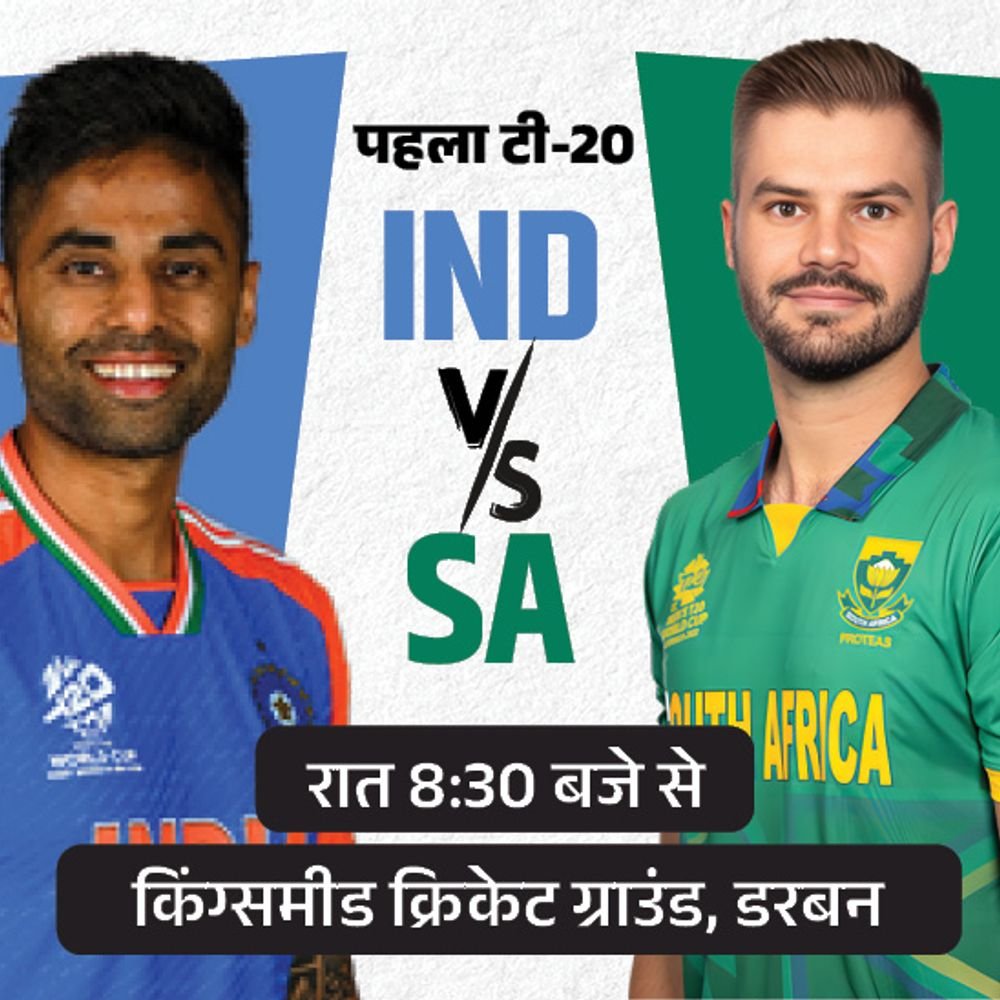 भारत और साउथ अफ्रीका के बीच चार मैचों की टी-20 सीरीज का पहला मुकाबला आज डरबन में खेला जाएगा। किंग्समीड क्रिकेट ग्राउंड में मैच भारतीय समयानुसार रात 8:30 बजे से शुरू होगा। टॉस 8:00 बजे होगा। टीम इंडिया इसी साल जून में टी-20 वर्ल्ड कप के फाइनल में साउथ अफ्रीका को ही हराकर चैंपियन बनी थी। फाइनल के बाद साउथ अफ्रीका और भारतीय टीम पहली बार एक दूसरे का सामना करने वाली हैं। साउथ अफ्रीका के खिलाफ भारत मजबूत