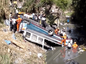 ग्वाटेमाला में बस हादसा, 55 की मौत:35 मीटर गहरे नाले में गिरी बस; हादसे के वक्त 70 लोग सवार थे