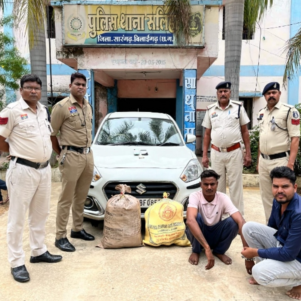 सारंगढ़-बिलाईगढ़ जिले के सलीहा थाना पुलिस ने लग्जरी कार में गांजे की तस्करी कर रहे दो आरोपियों को गिरफ्तार किया है। आरोपियों के कब्जे से 19 किलोग्राम गांजा, एक स्विफ्ट डिजायर कार, मोबाइल फोन समेत अन्य सामान बरामद किया गया है। जब्त सामग्री की कुल कीमत लगभग 8 लाख 14 हजार रुपए बताई जा रही है। थाना प्रभारी रूपेंद्र नारायण साय ने बताया कि उन्हें मुखबिर से सूचना मिली थी कि नारायण पटेल के ढाबा के सामने एक कार में ओडिशा की ओर से गांजा लेकर कुछ संदिग्ध आ रहे हैं। पुलिस टीम ने तत्काल कार्रवाई करते हुए घेराबंदी की और स्विफ्ट डिजायर (CG-1BF-0857) कार को रोककर तलाशी ली। तलाशी के दौरान कार की डिग्गी में छुपाकर रखा गया 19 किलो गांजा बरामद हुआ। मौके से दो आरोपियों पुरुषोत्तम साहू (24 वर्ष) और सुरेंद्र लहरे (27 वर्ष) को गिरफ्तार किया गया। दोनों आरोपी जिला मुंगेली के थाना लालपुर कुधरूताल के रहने वाले हैं। पुलिस ने आरोपियों के खिलाफ एनडीपीएस एक्ट के तहत मामला दर्ज कर लिया है। जब्त सामग्री में गांजा के अलावा मोबाइल फोन और अन्य वस्तुएं शामिल हैं, जिनकी कुल अनुमानित कीमत 1.90 लाख रुपए, और वाहन समेत कुल जब्ती 8.14 लाख रुपयए बताई गई है। सलीहा पुलिस मामले की जांच आगे बढ़ा रही है और गांजा तस्करी के नेटवर्क से जुड़े अन्य लोगों की तलाश जारी है।