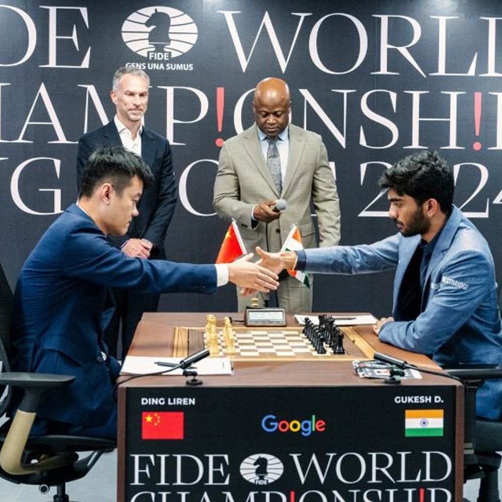 वर्ल्ड चेस चैंपियनशिप फाइनल में गुकेश और लिरेन के बीच 14 गेम खेले जाएंगे। यह 12 दिसंबर तक चलेगा। फाइनल स्कोर बराबर रहने पर ट्राईब्रेकर मुकाबला खेला जाएगा, जो 13 दिसंबर को होगा। वर्ल्ड चेस चैंपियनशिप के इतिहास में पहली बार ऐसा है कि दो एशियाई खिलाड़ी वर्ल्ड चैंपियन बनने के लिए एक-दूसरे से भिड़ रहे हैं। कौन हैं डी गुकेश
