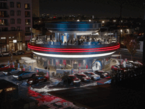 मस्क ने स्पेसशिप जैसा दिखने वाला रेस्त्रां खोला:यहां रोबोट पॉपकॉर्न सर्व करता है, मूवी के लिए 45 फीट की स्क्रीन; 80 सुपरचार्जर