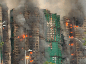 हॉन्गकॉन्ग की 35 मंजिला इमारत में आग, 4 की मौत:बांस का मचान होने से आग तेजी से फैली, इमारत में 13 लोग अब भी फंसे