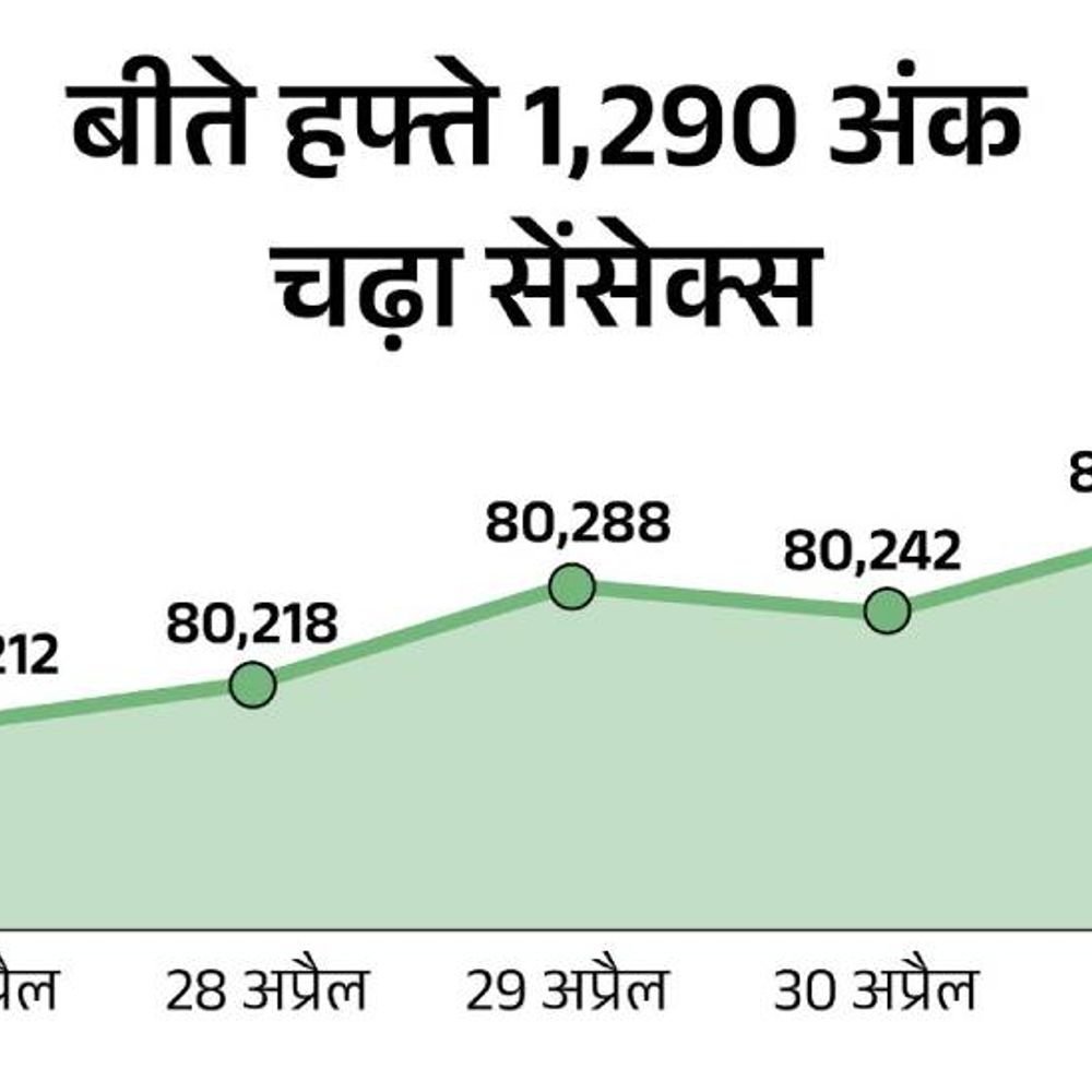 हफ्ते के पहले कारोबारी दिन आज यानी सोमवार, 5 मई को शेयर बाजार में तेजी है। सेंसेक्स करीब 400 अंक ऊपर 80,900 के स्तर पर कारोबार कर रहा है। निफ्टी में भी करीब 150 अंक की तेजी है, ये 24,450 के स्तर पर है। सेंसेक्स के 30 में से 24 शेयरों में तेजी है। एशियन पेंट्स, अडाणी पोर्ट्स और टाटा मोटर्स के शेयर में 1% से ज्यादा की तेजी है। कोटक महिंद्रा बैंक का शेयर 3.30% गिरा है। निफ्टी के 50 शेयरों में से 40 में तेजी है। NSE के सेक्टोरल इंडाइसेज में ऑटो, FMCG और IT सेक्टर में 1% की तेजी है। वहीं, मीडिया और बैंकिंग सेक्टर में मामूली गिरावट है। ग्लोबल मार्केट में आज कारोबार नहीं शुक्रवार को बाजार में रही थी मामूली तेजी शुक्रवार, 2 मई को शेयर बाजार में तेजी रही थी। सेंसेक्स 260 अंक चढ़कर 80,502 के स्तर पर बंद हुआ। निफ्टी में भी 12 अंक की तेजी रही, ये 24,347 के स्तर पर बंद हुआ। सेंसेक्स के 30 शेयरों में से 17 चढ़कर बंद हुए। अडाणी पोर्ट्स का शेयर 4.11%, बजाज फाइनेंस का 2.70%, SBI का 1.51% ऊपर रहे। इंडसइंड बैंक, टाटा मोटर्स, ITC, टाटा स्टील और मारुति सुजुकी 1% ऊपर बंद हुए। नेस्ले इंडिया, NTPC और कोटक बैंक के शेयर में 1% से ज्यादा की गिरावट रही। निफ्टी के 50 शेयरों में से 32 में गिरावट रही। NSE के सेक्टोरल इंडाइसेज में मेटल, रियल्टी और कंज्यूमर ड्यूरेबल्स में सबसे ज्यादा गिरावट रही। जबकि, IT, मीडिया और बैंकिंग शेयर में मामूली तेजी देखने को मिली।