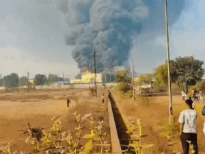 रायपुर के केमिकल प्लांट में भीषण आग VIDEO:धमाके से थर्राए लोग, 5KM दूर से दिख रहा धुएं का गुबार; 2 मजदूर घायल
