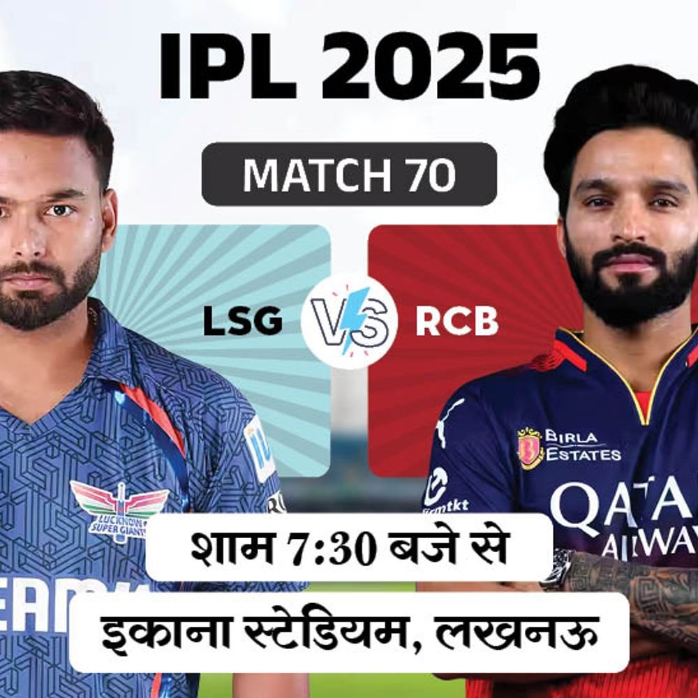IPL 2025 का आखिरी लीग मैच लखनऊ सुपर जायंट्स (LSG) और रॉयल्स चैलेंजर्स बेंगलुरु (RCB) के बीच इकाना क्रिकेट स्टेडियम में खेला जा रहा है। बेंगलुरु दो बदलाव के साथ उतरी है। लियम लिविंगस्टन और नुवान थुषारा को मौका दिया गया है। जबकि टिम डेविड और लुंगी एनगिडी नहीं खेल रहे हैं। लखनऊ से मैथ्यू ब्रीजकी और दिग्वेश राठी खेल रहे हैं। दोनों टीमें इस सीजन में पहली बार आमने-सामने हैं। मुकाबले में विराट कोहली और निकोलस पूरन के बीच सबसे ज्यादा रन बनाने की होड़ देखने को मिलेगी। इस सीजन में कोहली 548 और पूरन 511 रन बना चुके हैं। फिलहाल बेंगलुरु 13 मैचों में 8 जीत, 4 हार और एक बेनतीजा मैच से 17 पॉइंट्स लेकर तीसरे नंबर पर है। टीम को अगर टॉप-2 में रहकर क्वालीफायर-1 खेलना है, तो हर हाल में यह मैच जीतना ही होगा। वहीं टूर्नामेंट से पहले ही बाहर हो चुकी लखनऊ जीत के साथ इस सीजन को अलविदा कहना चाहेगी। LSG अभी पॉइंट्स टेबल में सातवें पायदान पर है। टीम के 13 मैचों में 6 जीत और 7 हार के बाद 12 पॉइंट हैं। अगर लखनऊ यह मैच जीतती है तो सनराइजर्स हैदराबाद को पीछे छोड़कर छठे स्थान पर आ जाएगी। दोनों टीमों की पॉसिबल प्लेइंग 11 लखनऊ सुपर जायंट्स (LSG): ऋषभ पंत (कप्तान और विकेटकीपर), मिचेल मार्श, एडेन मार्करम, निकोलस पूरन, आयुष बदोनी, अब्दुल समद, हिम्मत सिंह, दिग्वेश राठी, आकाश दीप, आवेश खान, और विलियम ओरूर्के। रॉयल्स चैलेंजर्स बेंगलुरु (RCB): रजत पाटीदार ( कप्तान), फिल सॉल्ट, विराट कोहली, जितेश शर्मा (विकेटकीपर), टिम डेविड, रोमारियो शेफर्ड, क्रुणाल पंड्या, भुवनेश्वर कुमार, यश दयाल, जोश हेजलवुड और सुयश शर्मा।